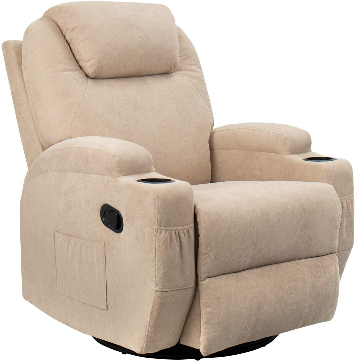 Homall Recliner Chair Massage Fabric 360 Swivel Rocker Recliner Living Room Chair Home Theater Seating Heated Overstuffed Single Sofa Chair Walmart Com
