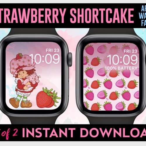 Set Of 2 Strawberry Shortcake Apple Watch Faces Wallpapers Etsy